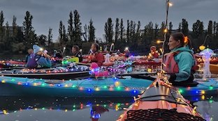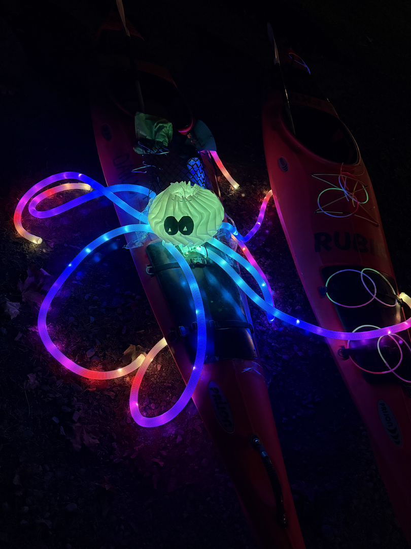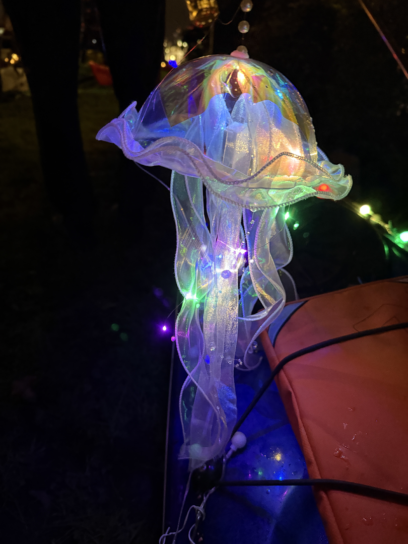 Mittlerweile wählte eine Jury aus Mitgliedern verschiedener Vereine die beliebtesten Funzelmotive, Ein beleuchteter Octopus mit wabernden Lichtertentakeln, eine Geisterlady und Friedenstauben auf dem Globus wurden zu den Siegermotiven gekürt. Das wärmende Lagerfeuer bildete den Abschluss des Abends, an dem die Eindrücke der Funzelfahrt besprochen und auch die kommenden Kanu-Veranstaltungen geplant wurden.
